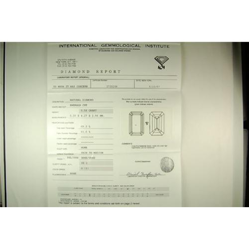 This ANTIQUE Style Engagement Ring features an EMERALD CUT DIAMOND = .58 CARATS! This Diamond is FINE 'G' Color and VERY FINE 'VS2' Quality. This Stunning PLATINUM setting is an EXACT REPLICA of an ORIGINAL ANTIQUE ENGAGEMENT RING. The Emerald Cut Diamond is set low in the ELEGANT PLATINUM mounting. The mounting also features 8 bead set DIAMONDS on the sides, with milgrained edges and a detailed design. The DIAMOND TOTAL WEIGHT = .66 CARATS! The ring is now a Size 5 3/4 and it can be resized either larger or smaller. It IS in MINT condition.