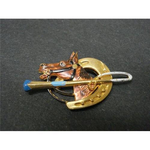 THIS IS WONDERFUL BROOCH - PERFECT FOR A HORSE LOVER, IT IS DONE IN A COLORFUL ENAMEL - as per images - THIS IS ANTIQUE COSTUME JEWELRY BROOCH, in excellent used condition, please take a look at our pictures, Measuring about 2" x 1 1/4", US Buyer to pay 7.00 for shipping plus insurance.THANKS.