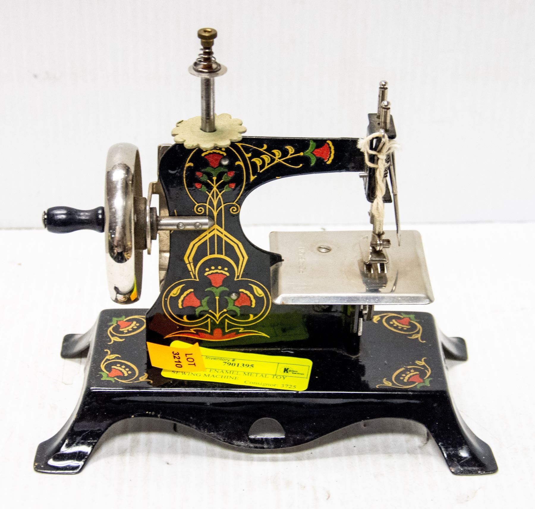 ANTIQUE ENAMEL METAL TOY SEWING MACHINE