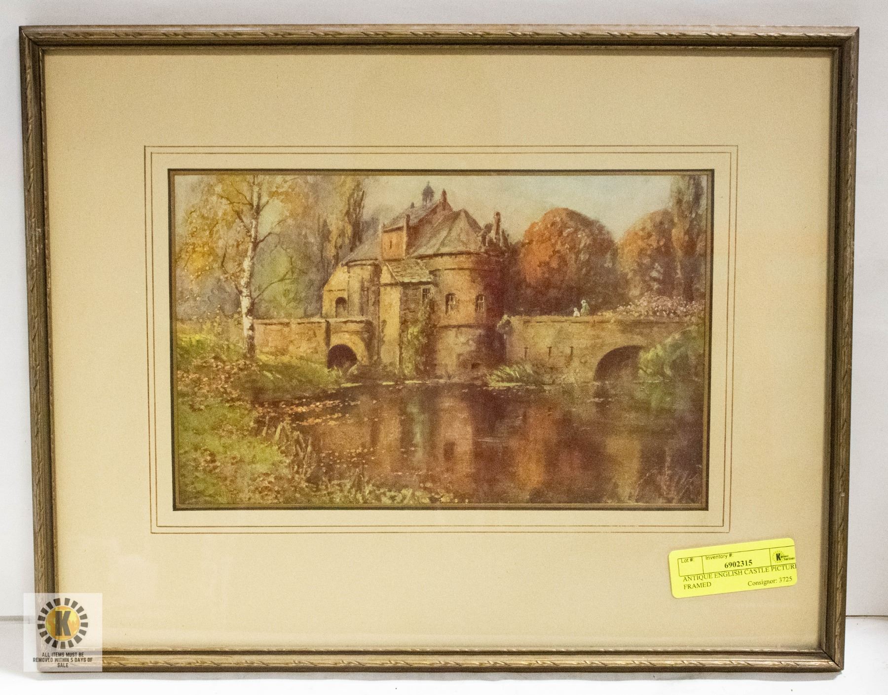 ANTIQUE ENGLISH CASTLE PICTURE FRAMED 13" X 17"