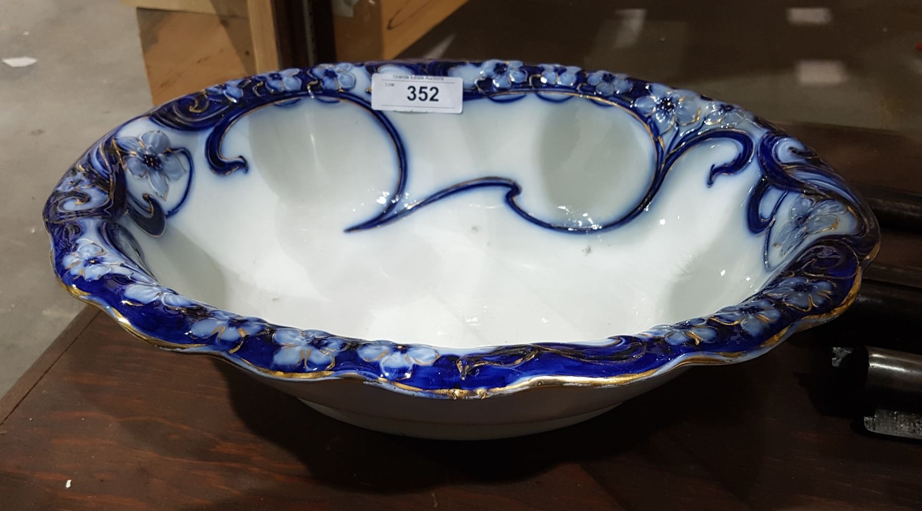 ANTIQUE ENGLISH FLOW BLUE BASIN