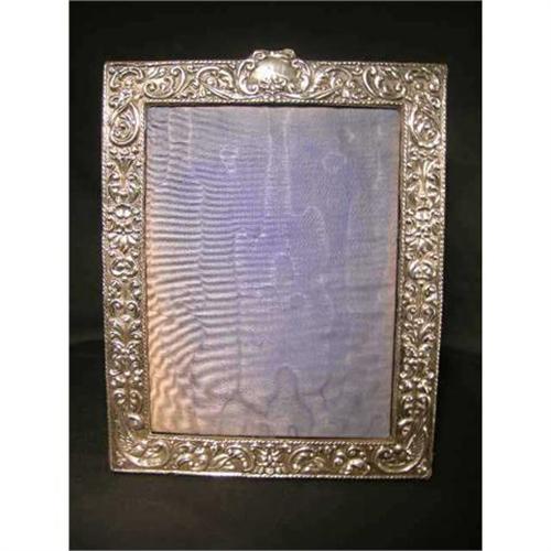 <table width="100%" border="0" cellspacing="0" cellpadding="4"><tr><td><em> </em></td></tr><tr> <td width="100%"> Ornate Antique photo frame with exquisite repousse sterling silver work. The frame is very large and seldom found in this size, an amazing 10 1/4 inches by 8 inches, photo size 8 inches by 6 inches. The frame has sweet BIRDS, flowers and gothic like faces all in intricate high relief. It is clearly hallmarked and dates from 1908. This fine picture frame is all ORIGINAL, not a recent reproduction. What a gorgeous rare silver frame to add to your collection of silver and vanity items. </td></tr><tr> <td> </td></tr><tr> <td>Reference #: TVSF845</td></tr><tr><td>Condition:Very Fine All Original</td></tr><tr><td>Year:1908</td></tr><tr><td>Title:ANTIQUE ENGLISH STERLING SILVER LARGE FRAME</td></tr><tr><td>Location:WA</td></tr></table>