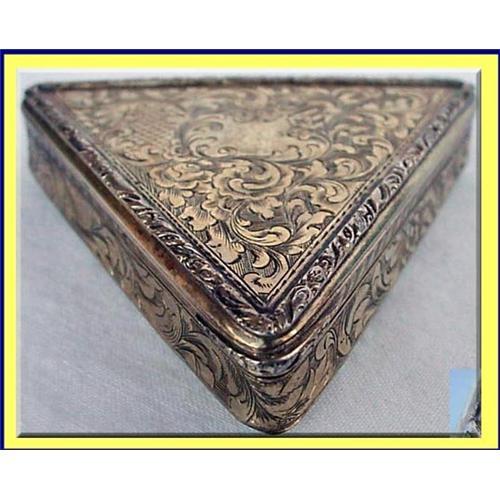 <tr><td>Title:ANTIQUE ENGRAVED VERMEIL TRIANGULAR BOX FRENCH</td></tr>