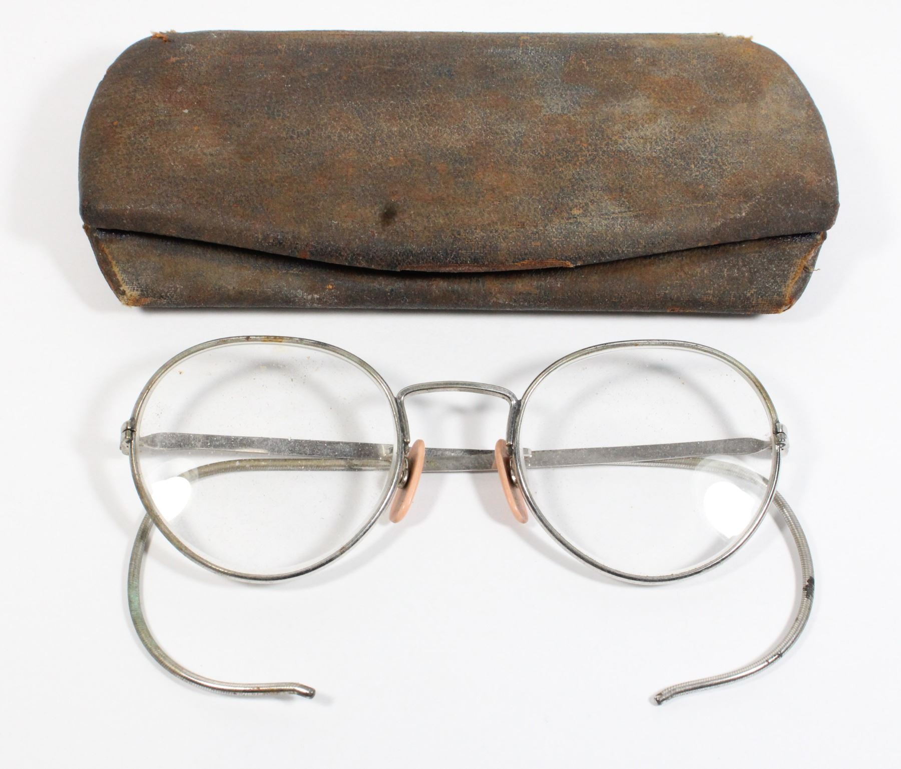 WIRE-RIMMED SPECTACLES WITH LEATHER CASE.