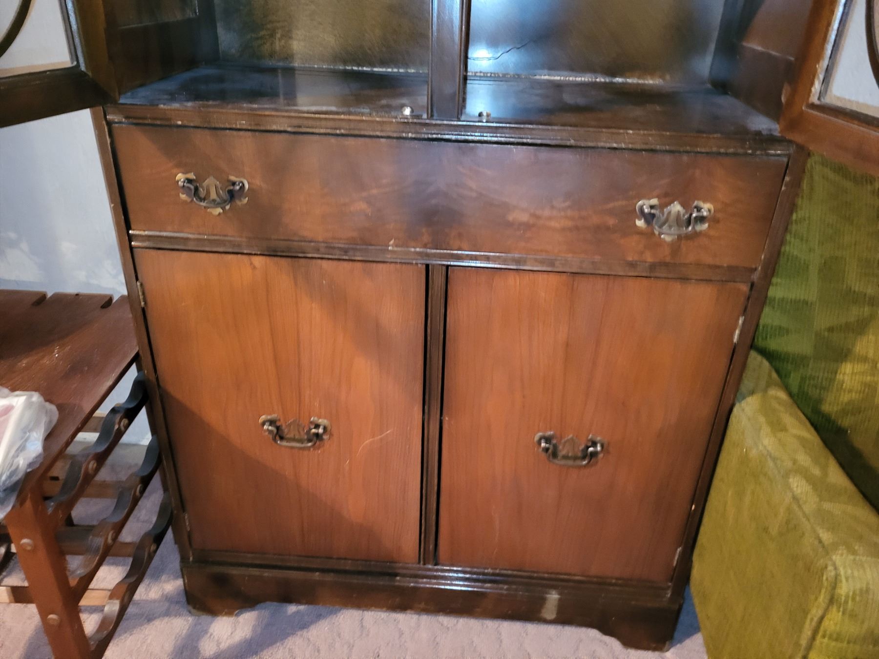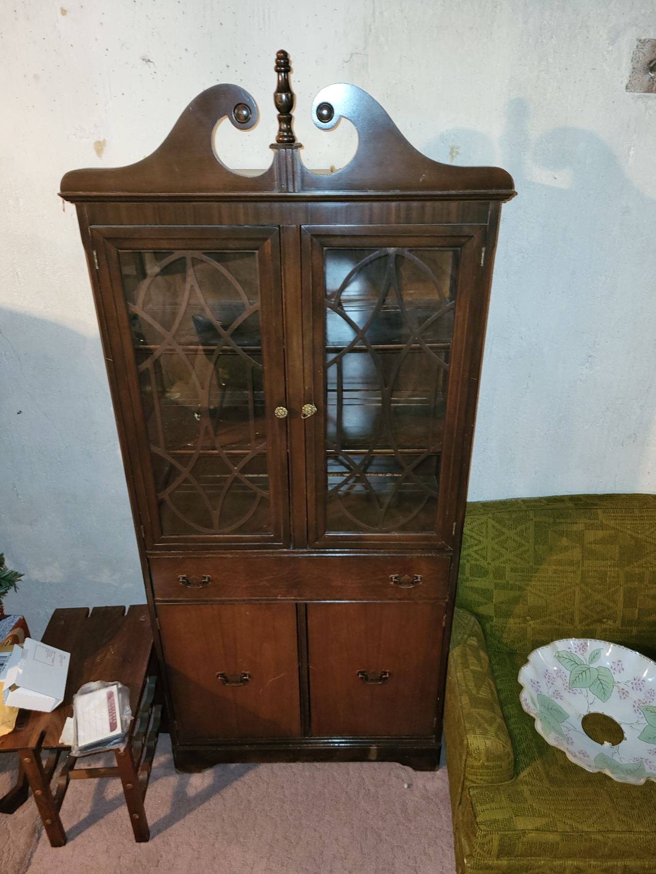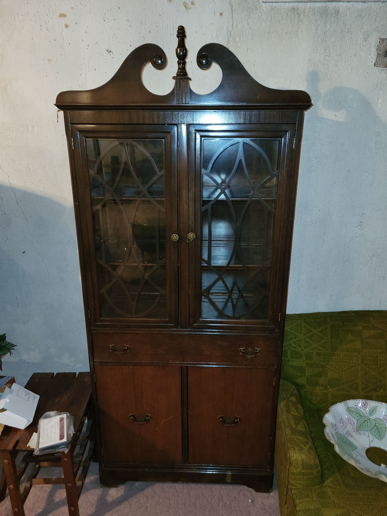 ANTIQUE FARMHOUSE WOOFEN CHINA CABINET. WONDERFUL CONDITION! MEASURES 31" X 14" X 73".