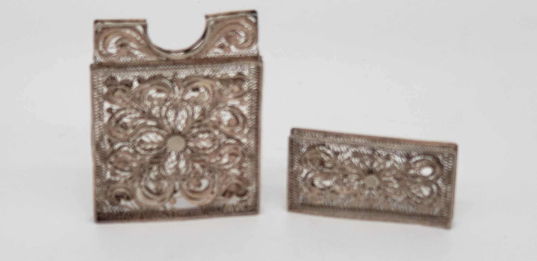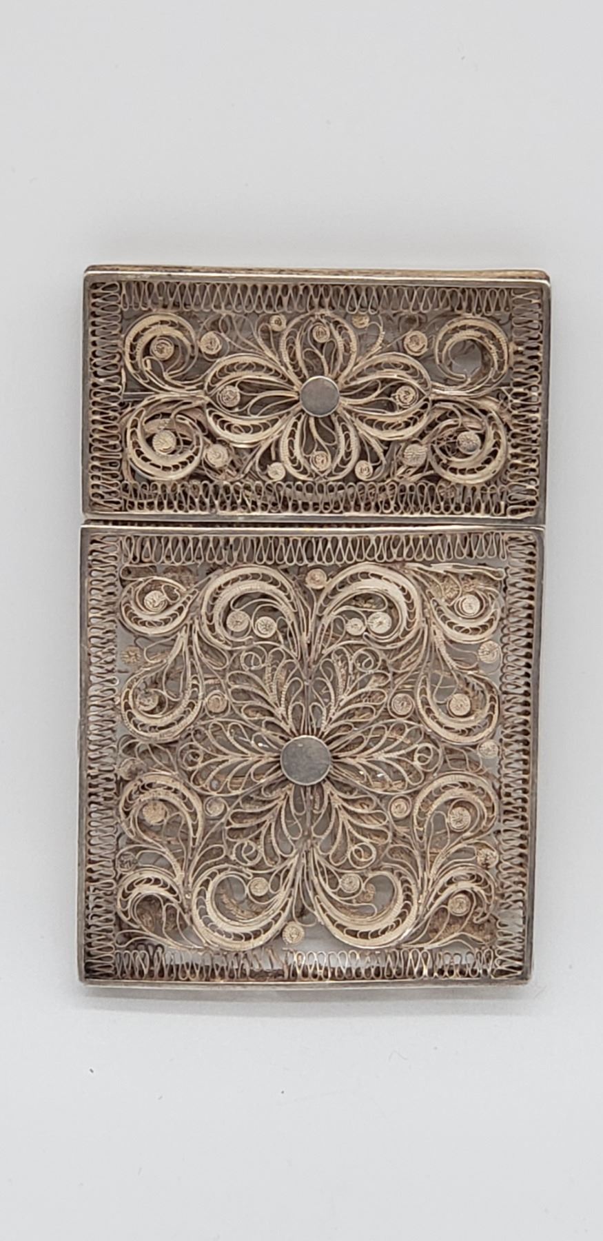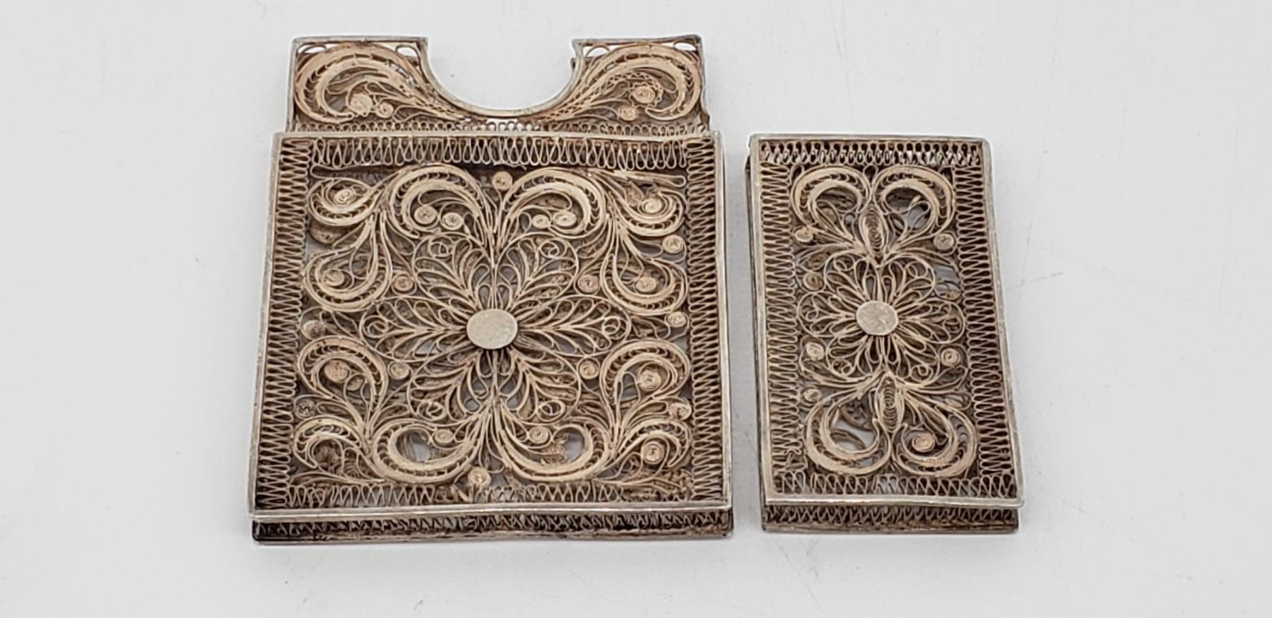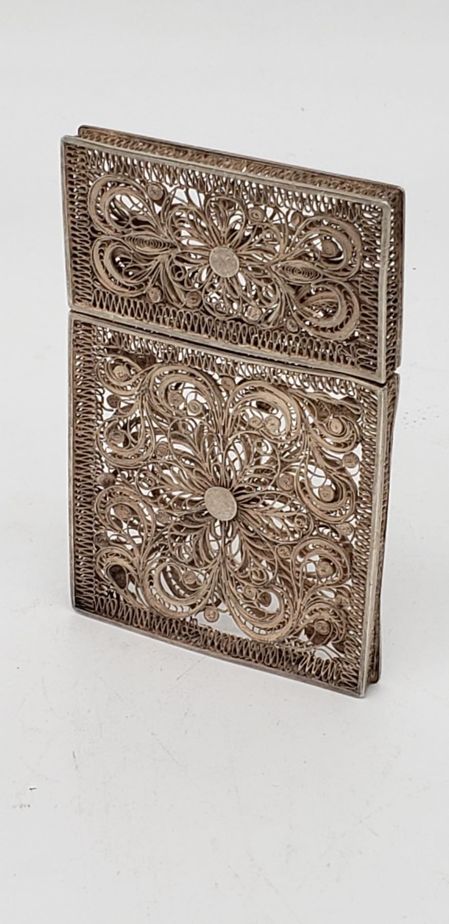 Antique Filagree Sterling Silver Business Card Holder Piece is 5 3/8" x 2 3/8" x 1/4" All items Located in in Hollywood Florida Warehouse For Shipping Call today for quote they have item numbers and Pak Mail is available for all your custom packaging and shipping needs. We can package, palletize, crate, insure and ship to any Domestic or International location. All packaging and shipping fees must be paid in full before shipment is released. On international shipments, consignee is responsible for all Duties, Taxes, Customs Clearance or any destination fees that apply. Please visit our website @ www.pakmail.com/us770 for contact information or to get a quote. (Let us know you are a winning bidder from the Puckett auction so we can correctly arrange pick up for your item