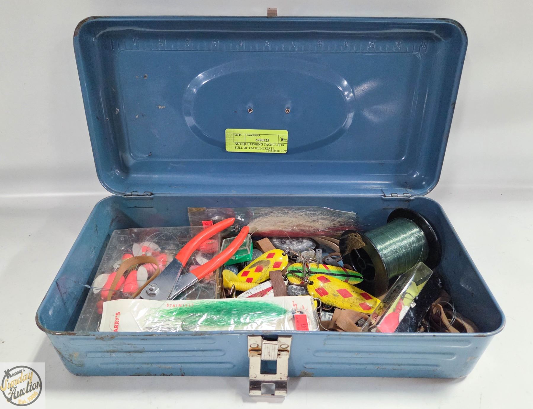 ANTIQUE FISHING TACKLE BOX FULL OF TACKLE-ESTATE