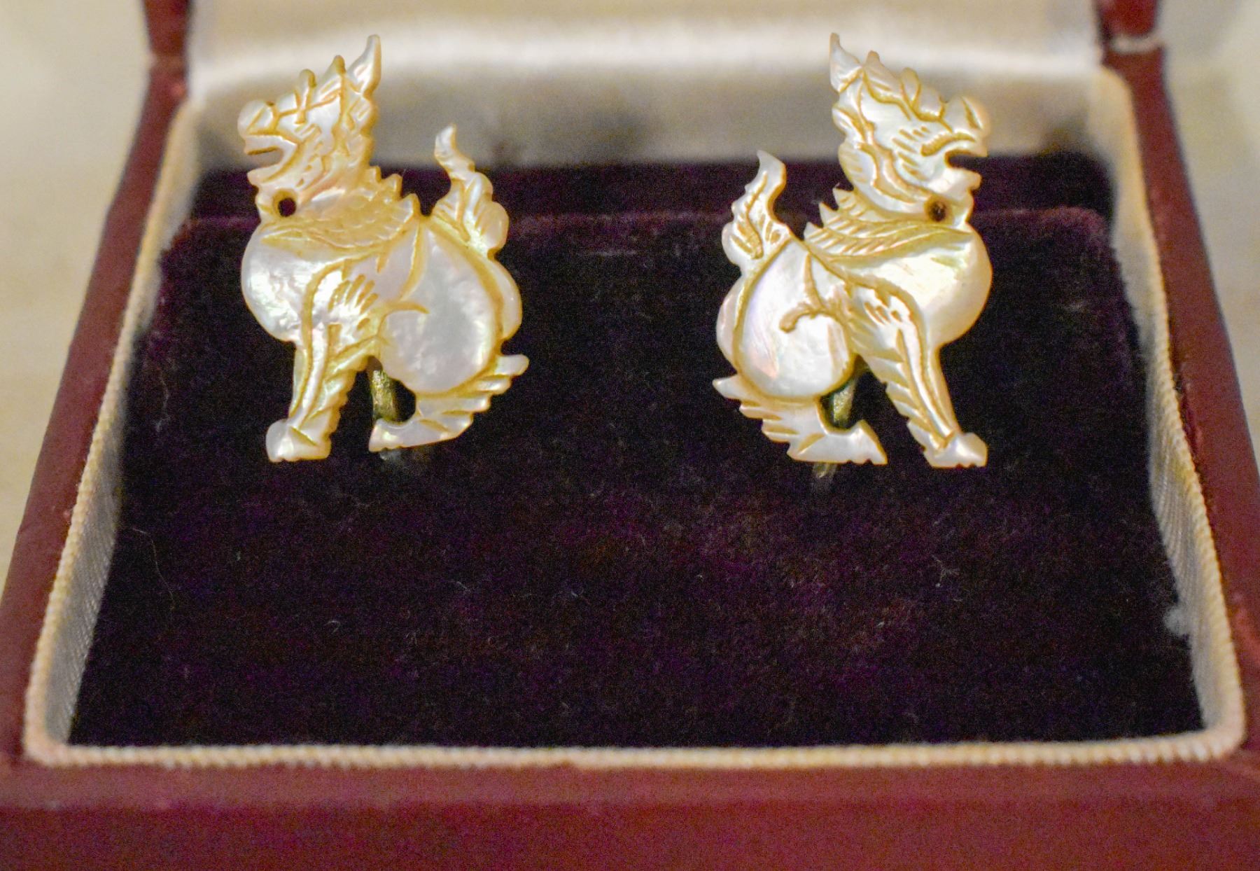 ANTIQUE FOO DOGS MOTHER OF PEARL EARRINGS