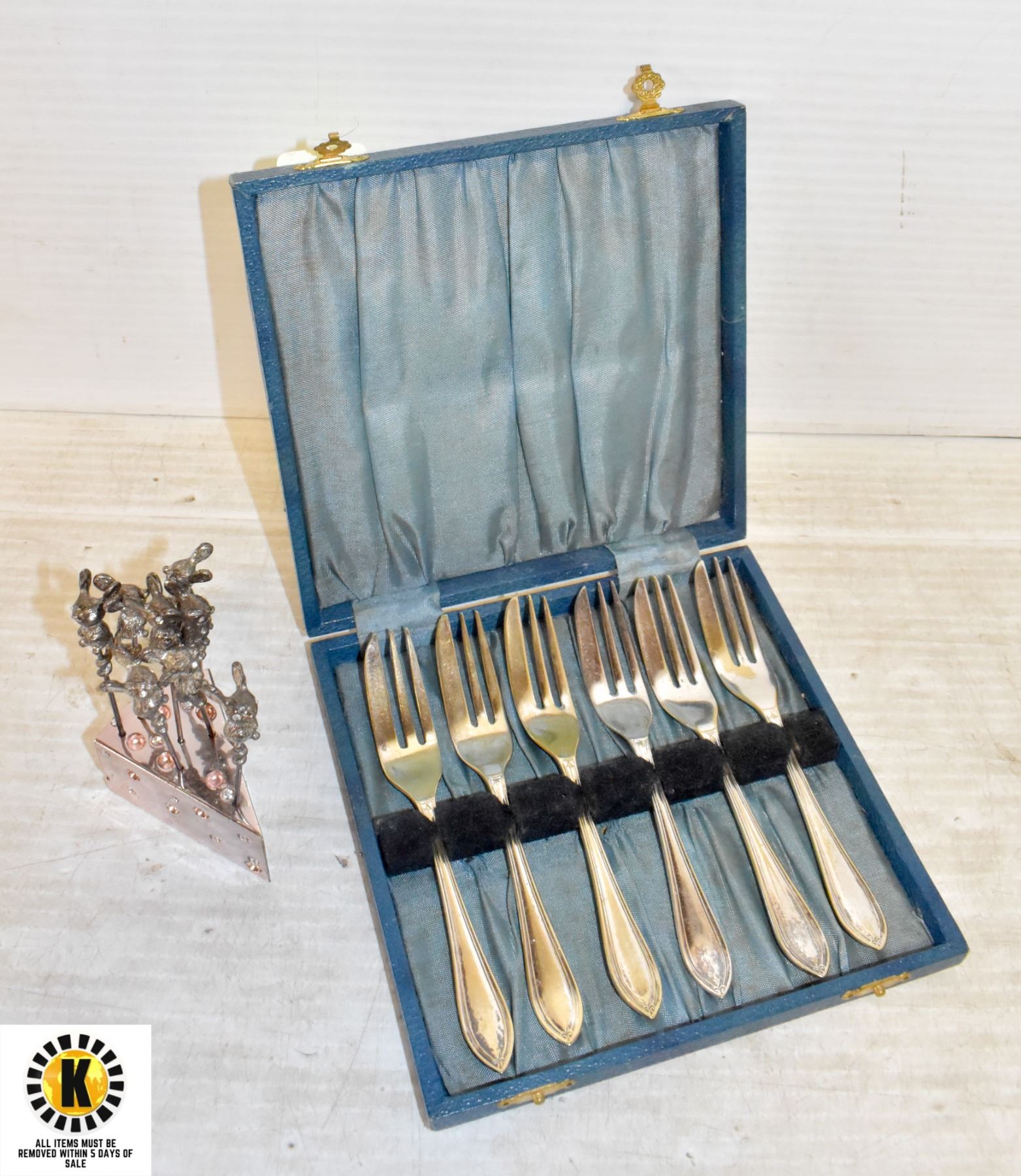 ANTIQUE FORK SET + MOUSE HOURDEURVE BLOCK