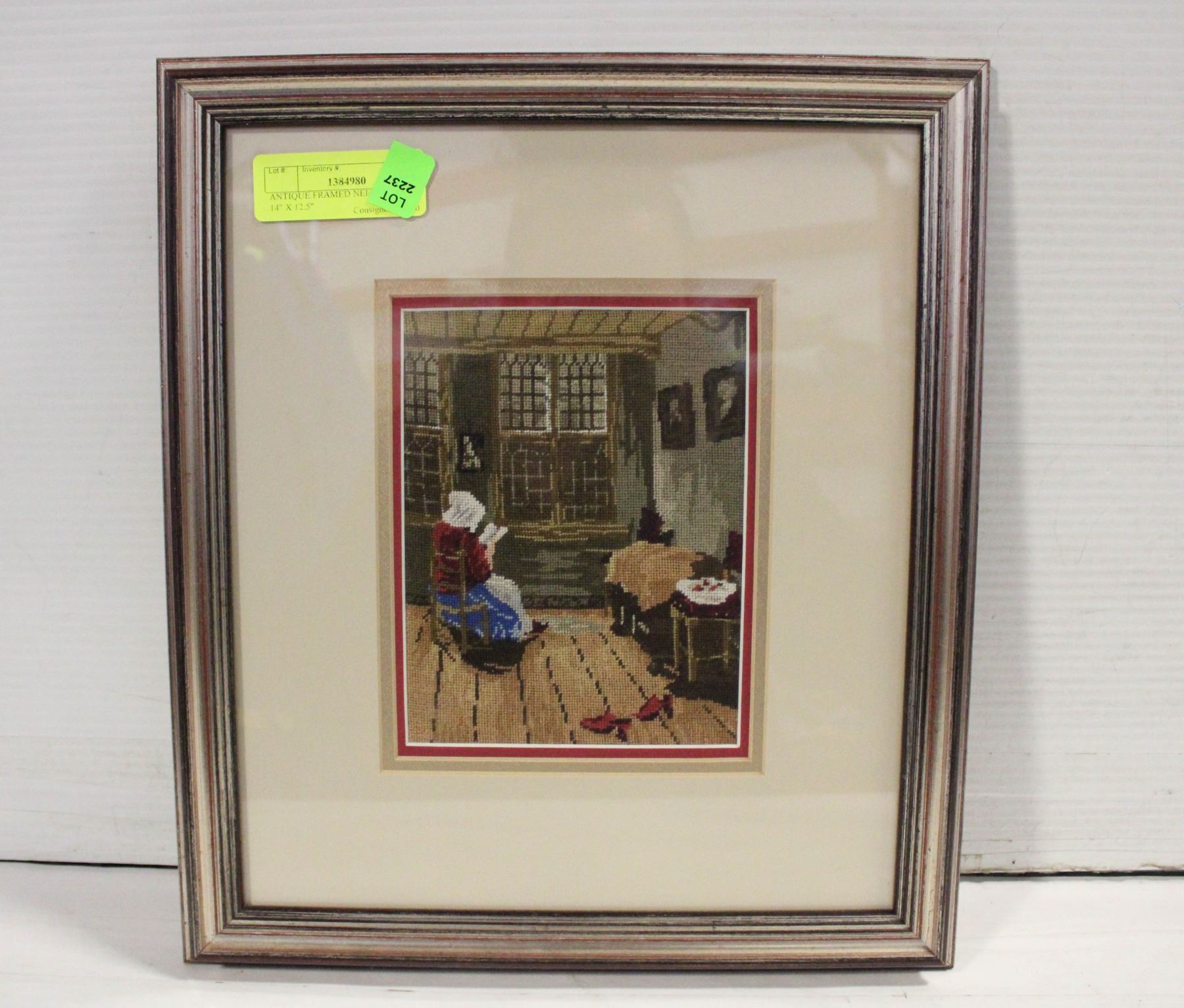 ANTIQUE FRAMED NEEDLE POINT- 14" X 12.5"