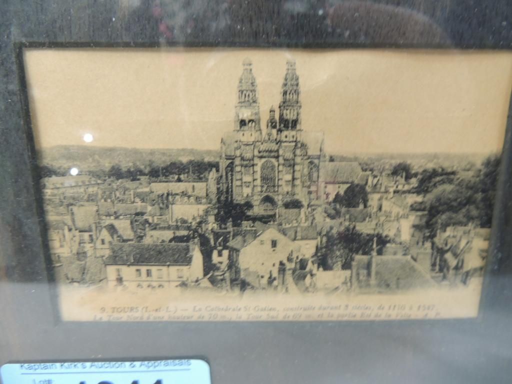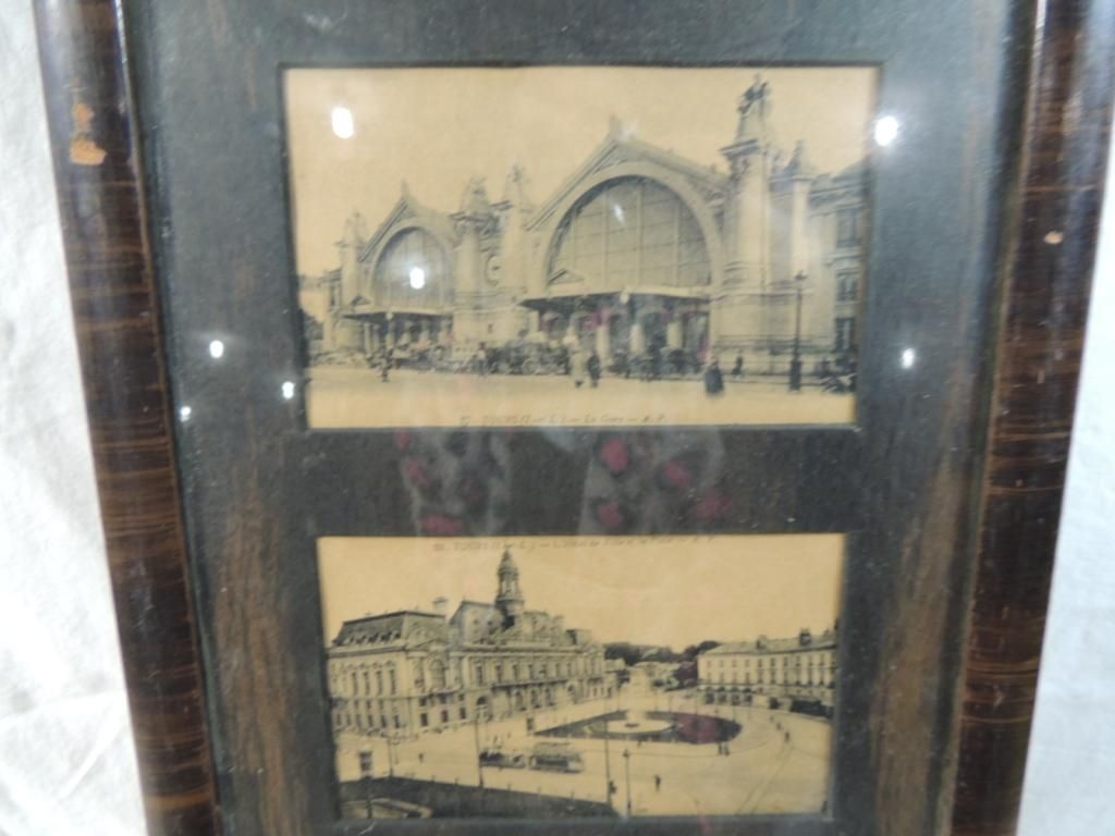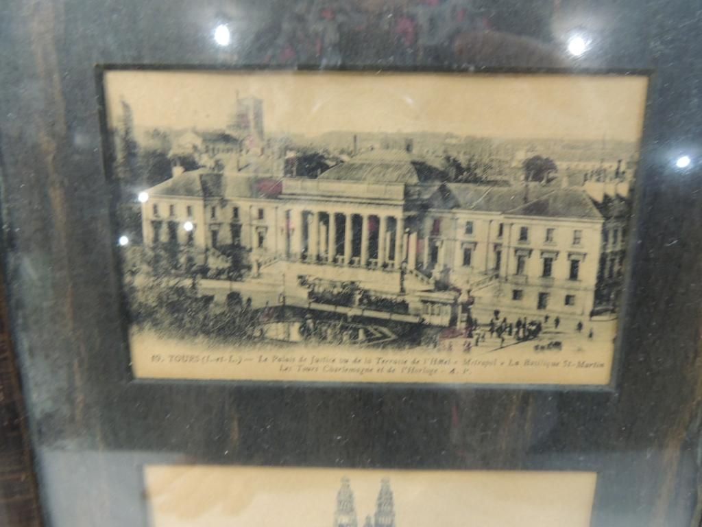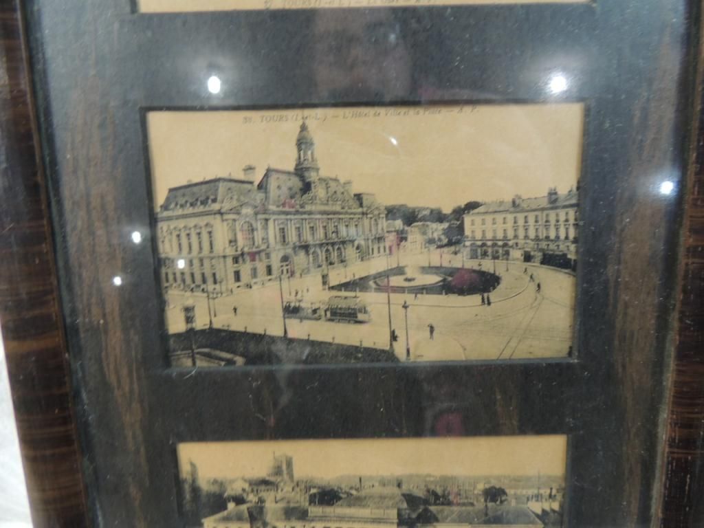 BEAUTIFUL ANTIQUE FRAME FOUR ANTIQUE FRANCE POSTCARDS FRAMED. AS SHOWN SEE PHOTO FOR MORE DETAILS.