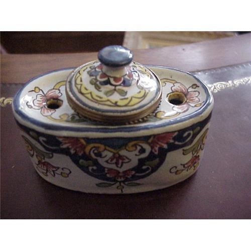 <tr><td>Title:ANTIQUE FRENCH FAIENCE QUIMPER INKWELL LOVELY </td></tr>
