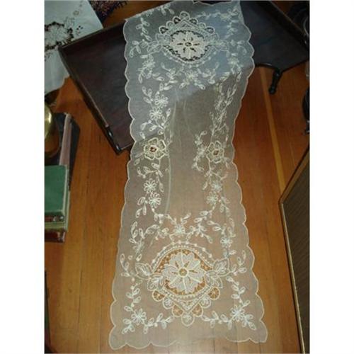 <tr><td>Title:ANTIQUE FRENCH NETTED LACE TAMBOUR RUNNER</td></tr>