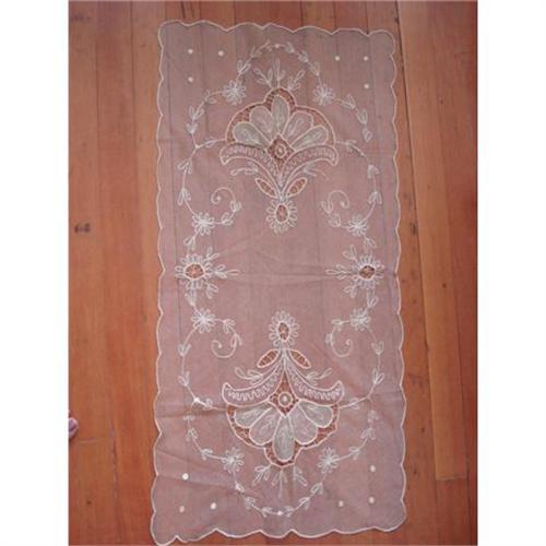 <tr><td>Title:ANTIQUE FRENCH NETTED LACE TAMBOUR WORK RUNNER</td></tr>