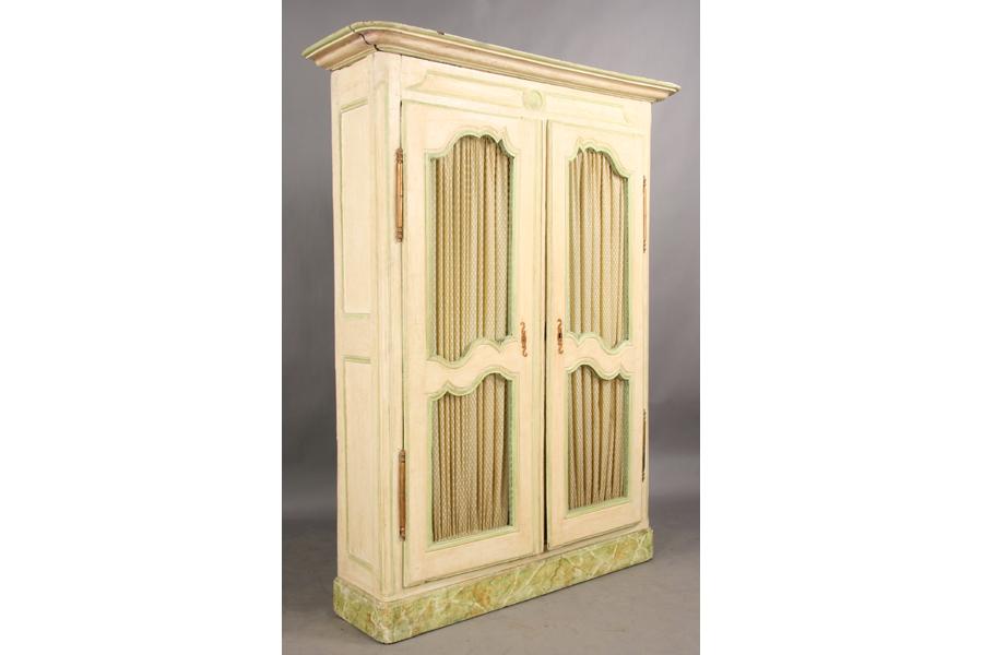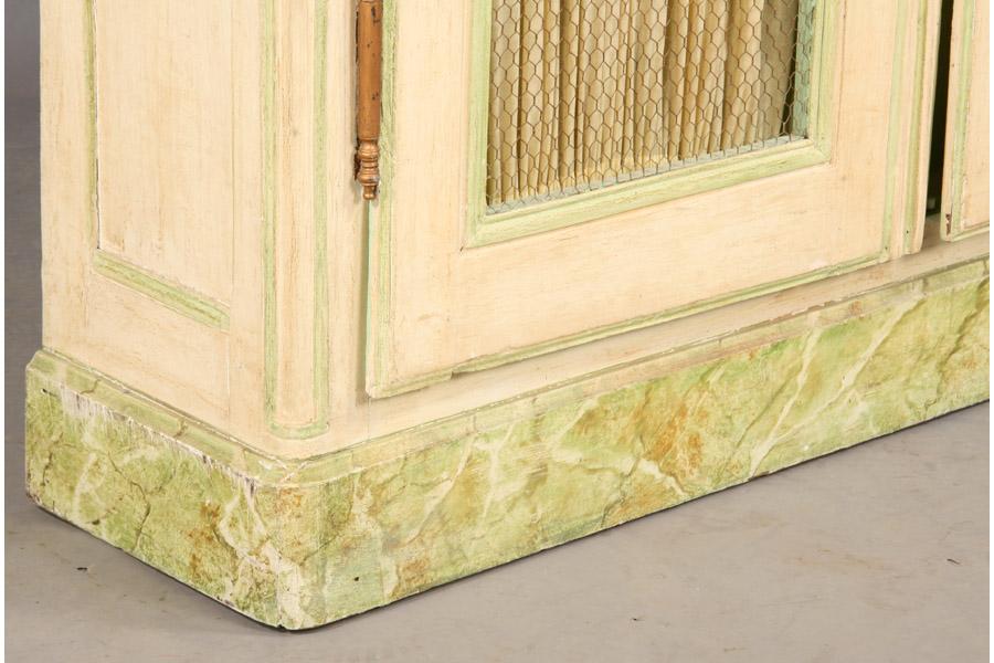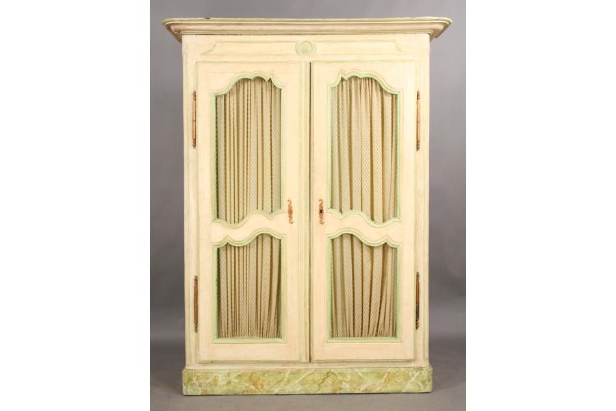 Antique French Provincial bibliotheque with stepped cornice and wire front door with shaped frames circa 1790. Older painted surface. Ht: 82" Width: 64" Depth: 19" ***PLEASE NOTE: All property shall be paid for by the purchaser within five (5) business days of the sale. Kamelot Auctions accepts cash (In house only), personal checks, certified checks and money orders. We do not accept credit cards or Paypal under any circumstances. Please note our policy regarding payments from International buyers: The only acceptable method of payment is a bank wire/bank transfer. For invoices more than $1000, there is no additional fee for this service. For invoices less than $1000, please include an additional $25 wire fee. We will be happy to forward our bank wiring information after the completion of the auction. Thank you for your understanding and cooperation. All purchases must be removed within 15 business days after an auction. Property not removed from our facility after 15 business days will be moved to an off-site storage facility at a charge of $10.00 per day payable by the buyer. Kamelot does NOT provide shipping services or estimates. However, we recommend the following independent shipping services: Antique Transport Co. at antiquetransport@cs.com, Farren Transport at farrentransport@comcast.net or All Points Shipping at jb@allpointsshippingnj.com for quotations and shipping arrangements for furniture and other large items that would require a blanket wrap shipping company. For quotations and shipping arrangements for smaller items that would traditionally be shipped through UPS, please contact The UPS Store at store4744@theupsstore.com or The Packaging Store at hrpa112@aol.com. Clients are welcome to pick up their items from our location or make their own shipping arrangements.
