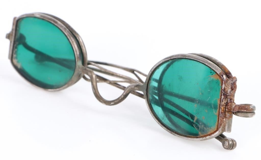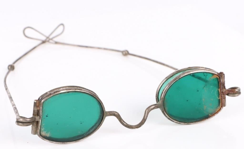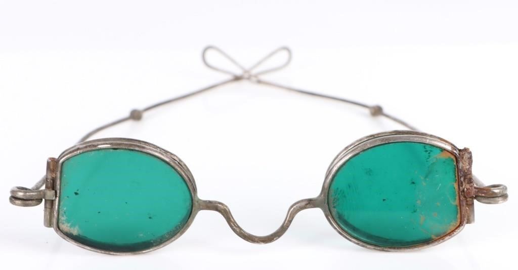 Antique Georgian solid silver CR & Co. double green tinted glasses.