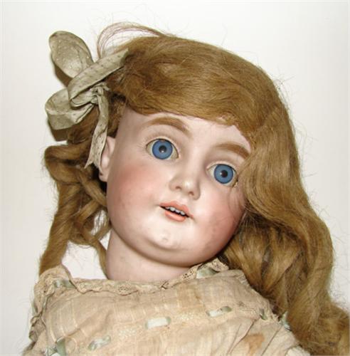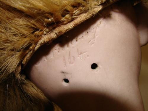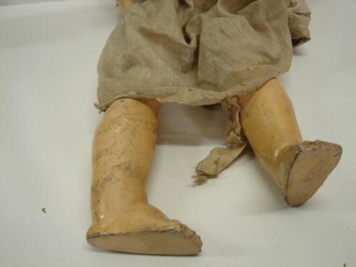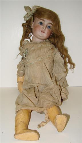 ANTIQUE GERMAN BISQUE DOLL. Marked on back of head "Germany/164". Doll has bisque head and papier-mache arms and legs. Thumb on right hand is missing. Dolls shows major wear at arms and legs. 25" H