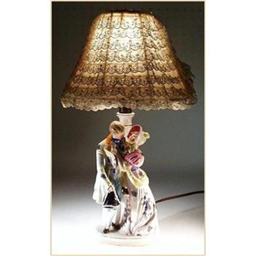 <tr><td>Title:ANTIQUE GERMAN PORCELAIN FIGURAL BOUDOIR LAMP</td></tr>