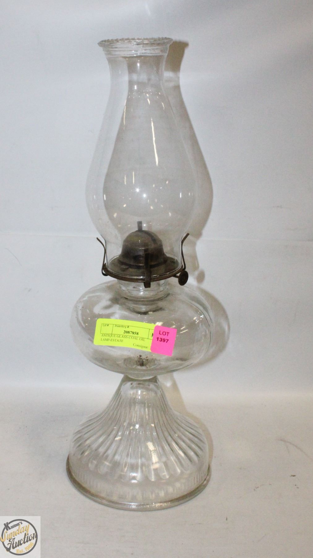 ANTIQUE GLASS COAL OIL LAMP-ESTATE