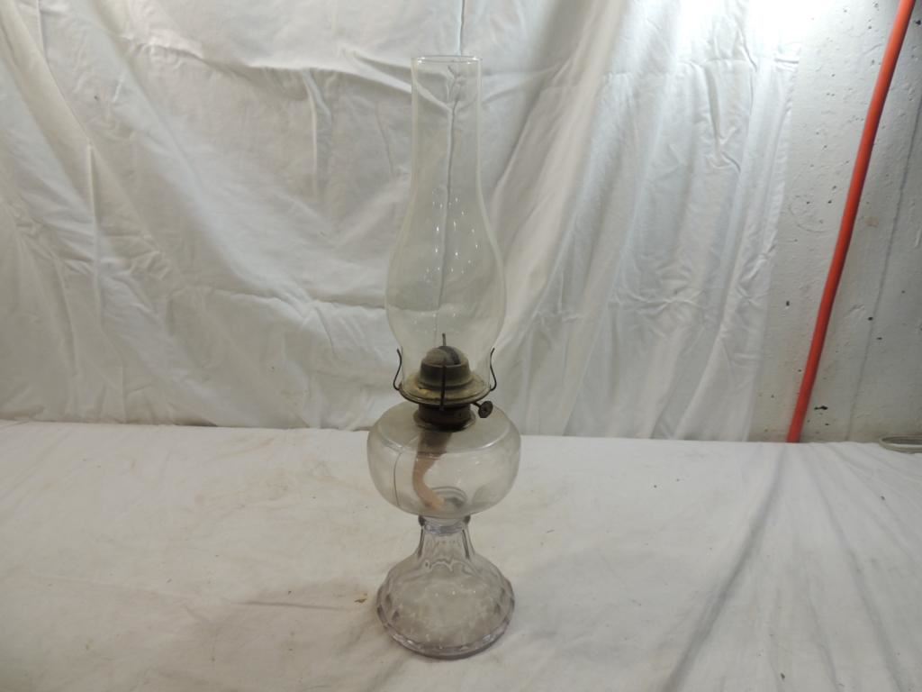 ANTIQUE GLASS HURRICANE OIL LAMP, VINTAGE OIL LAMP, GLASS OIL LAMP, COLLECTIBLE LAMP AS SHOWN SEE PHOTO FOR MORE DETAILS.