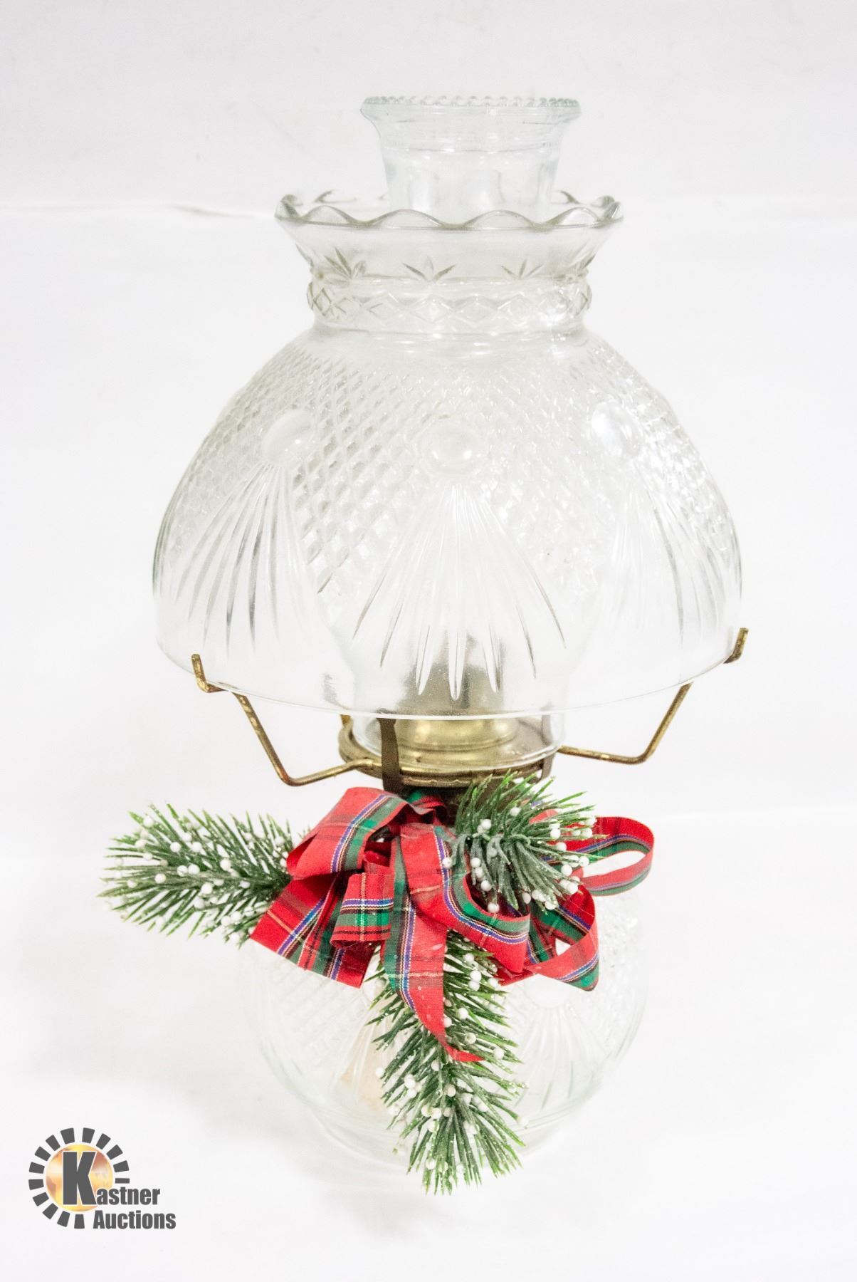 ANTIQUE GLASS OIL LAMP WITH SHADE