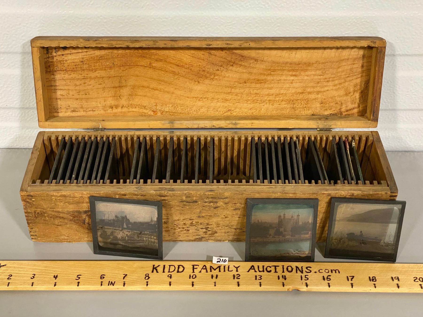 ANTIQUE GLASS PHOTO NEGATIVES IN ORIGINAL WOOD CASE