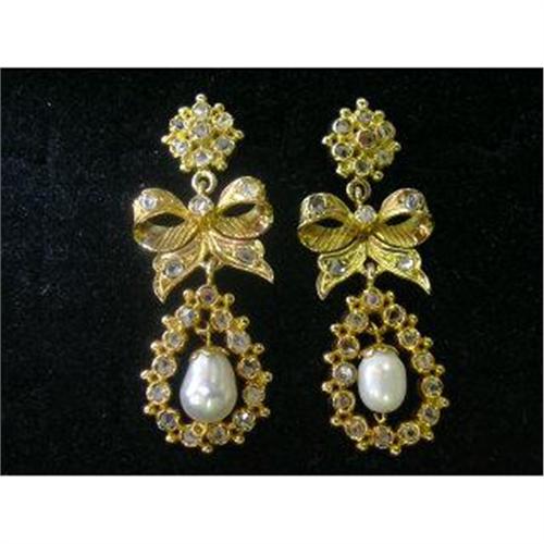 <tr><td>Title:ANTIQUE GOLD EARRINGS W/ DIAMONDS & PEARL</td></tr>