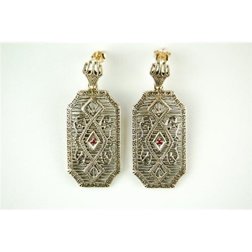 <tr><td>Title:ANTIQUE GOLD FILIGREE EARRINGS w RUBY</td></tr>
