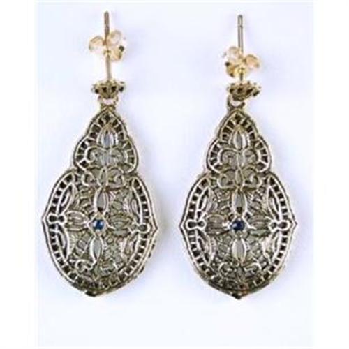 <tr><td>Title:ANTIQUE GOLD FILIGREE EARRINGS w SAPPHIRE</td></tr>