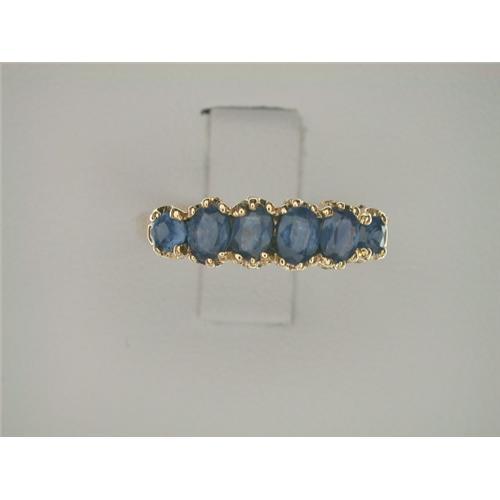 This Antique Style ring is an Authentic and Accurate copy of a ring CIRCA 1900 and THIS one is in MINT condition! It is a 9K Yellow Gold band style Ring featuring 6 GENUINE SAPPHIRES set across the top. This ring is 3/4 inches in length. It is a Size 7 and it can be resized either larger or smaller.