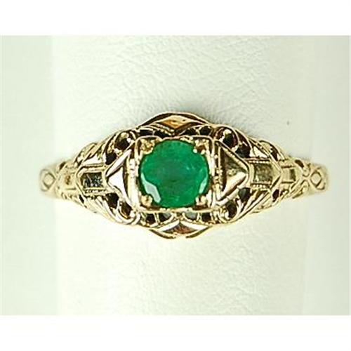 This ANTIQUE Style Victorian Ring is an Authentic and Accurate copy of a Ring from the 1900's but THIS one is in MINT condition. It is 9K GOLD and it features a beautiful round Genuine EMERALD = .40 CARATS. This ring is a Size 6 3/4 and it can be resized.