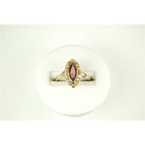 <tr><td>Title:ANTIQUE GOLD RING GARNET w PEARLS</td></tr>