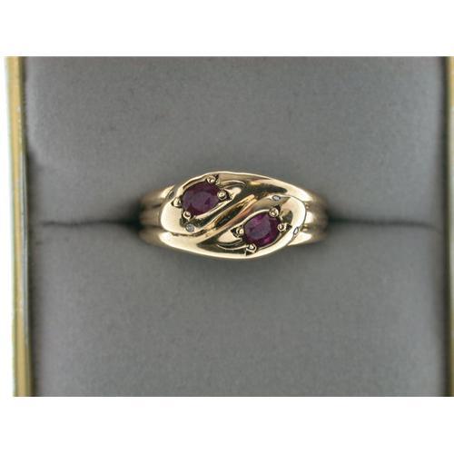 Antique Style Victorian 9K Gold SNAKE ring, featuring two snakes intertwined! Each snake has a Genuine Ruby at the top of the head and Diamond eyes! This Very collectible ring is a size 7 1/2 and I can easily resize it for you. It is in Mint condition.
