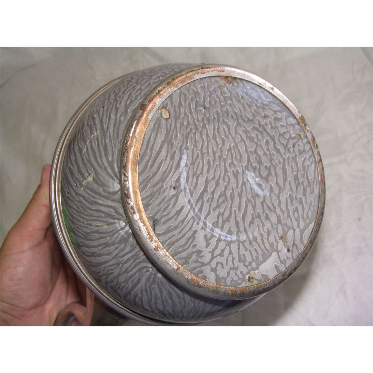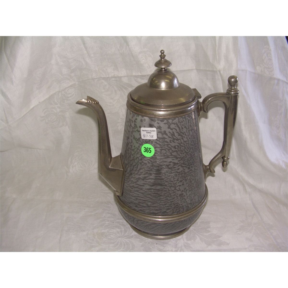 ANTIQUE GRAY GRANITEWARE ENAMELWARE & PEWTER COFFEE POT