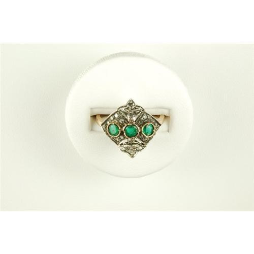 <tr><td>Title: ANTIQUE Gold Ring EMERALDS ROSE CUT DIAMONDS</td></tr>