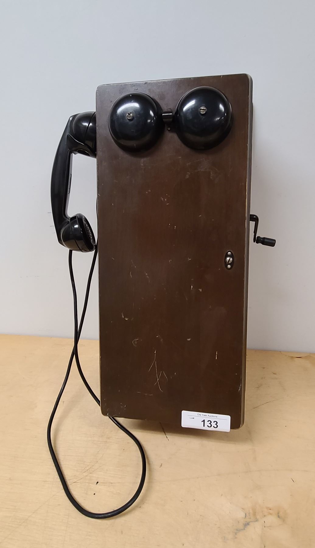 ANTIQUE HAND CRANK WOOD WALL PHONE