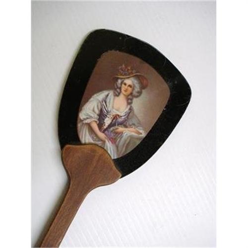 </font></strong>BEAUTIFUL ANTIQUE PARTLY REVERSE PAINTED ON GLASS, HAND MIRROR,DEPICTING PICTURE OF A VERY BEAUTIFUL LADY FROM ERA GONE BY,IT IS ATTACHED TO A WOOD HANDLE, as per images - Condition:very fine,considering age and use,mirror shows signs of age - no chips or cracks,it measures 11 3/4 inch long and 4 1/4 inch wide.US Buyer to pay 8.50 for shipping plus insurance.THANKS.