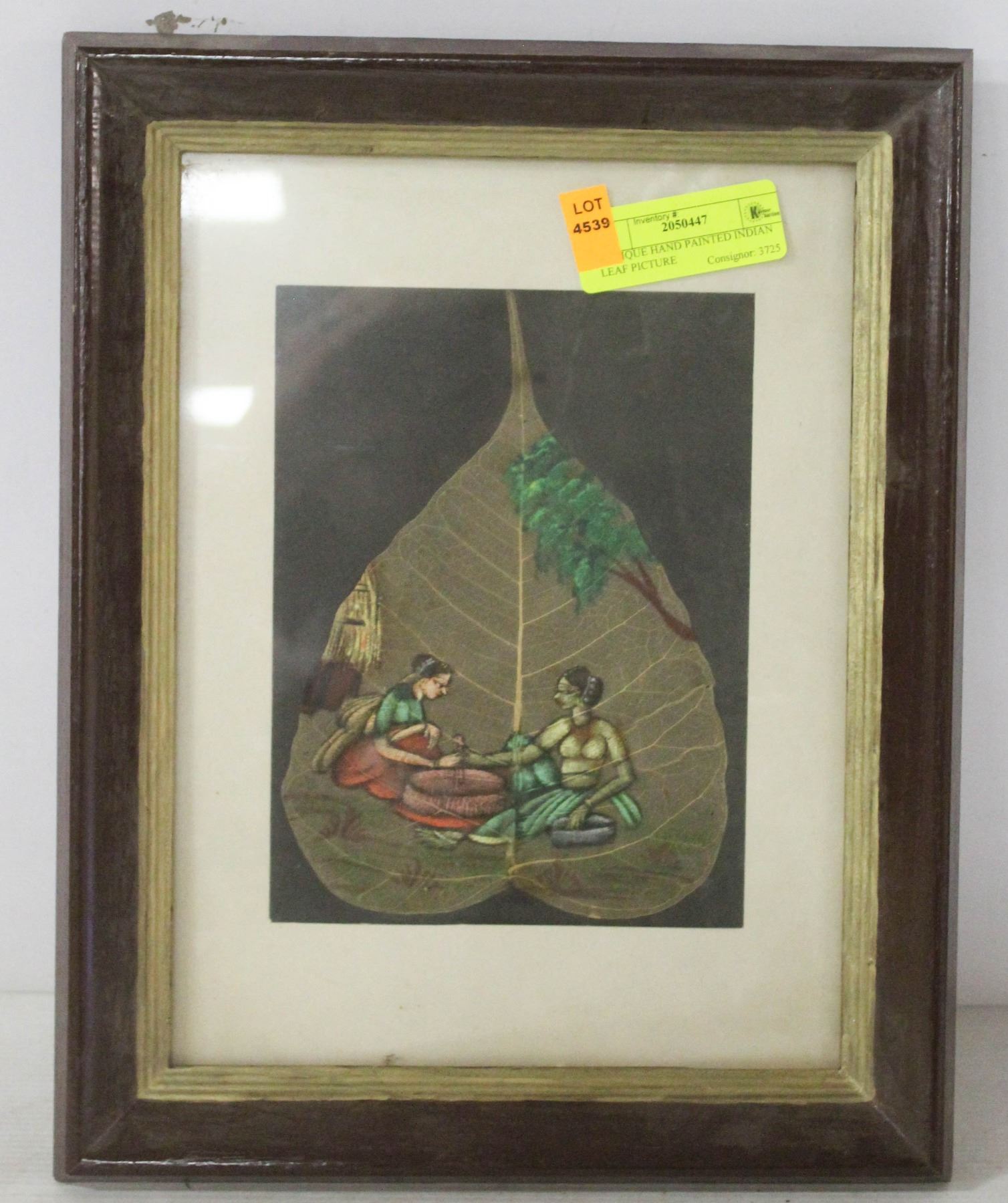 ANTIQUE HAND PAINTED INDIAN LEAF PICTURE