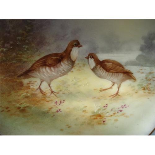 Lovely antique hand painted 9.5 inch Limoges plate of game birds. The plate is beautiful and highly decorative. In very nice condition, with slight loss of gold trim and gold overlay on the rich cobalt blue border, otherwise just wonderful. A lovely Limoges large plate to decorate with and add to your collection of cabinet plates.