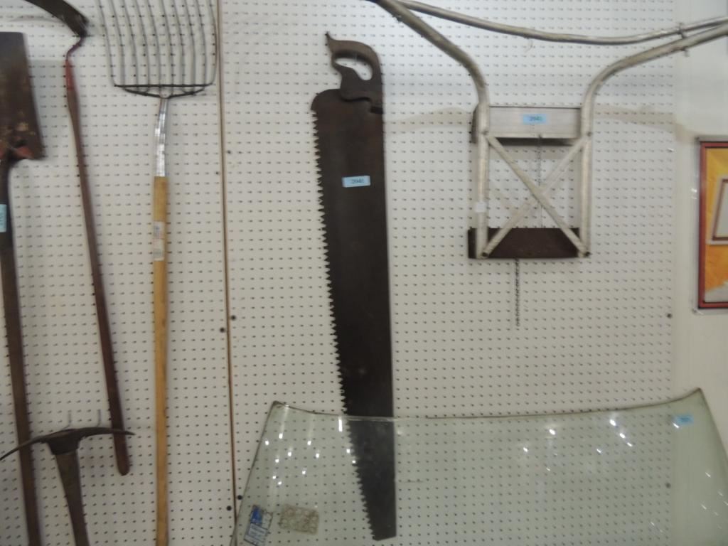 ANTIQUE HAND SAW, VINTAGE SAW, FARM EQUIPMENT, TOOLS, CONSTRUCTION TOOLS, AS SHOWN SEE PHOTO FOR MORE DETAILS.