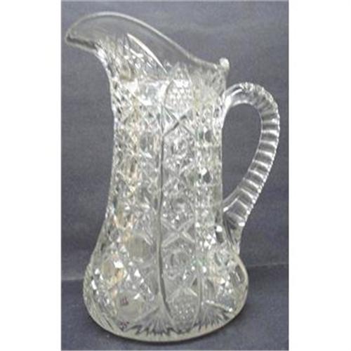 GORGEOUS HEAVY GLASS ANTIQUE JUG,as per pictures, BEAUTIFUL STYLE AND VERY HEAVY, IT STANDS ABOUT 10 1/4" TALL,EXCELLENT CONDITION,US BUYER TO PAY 10.00 FOR SHIPPING PLUS INSURANCE,THANKS.