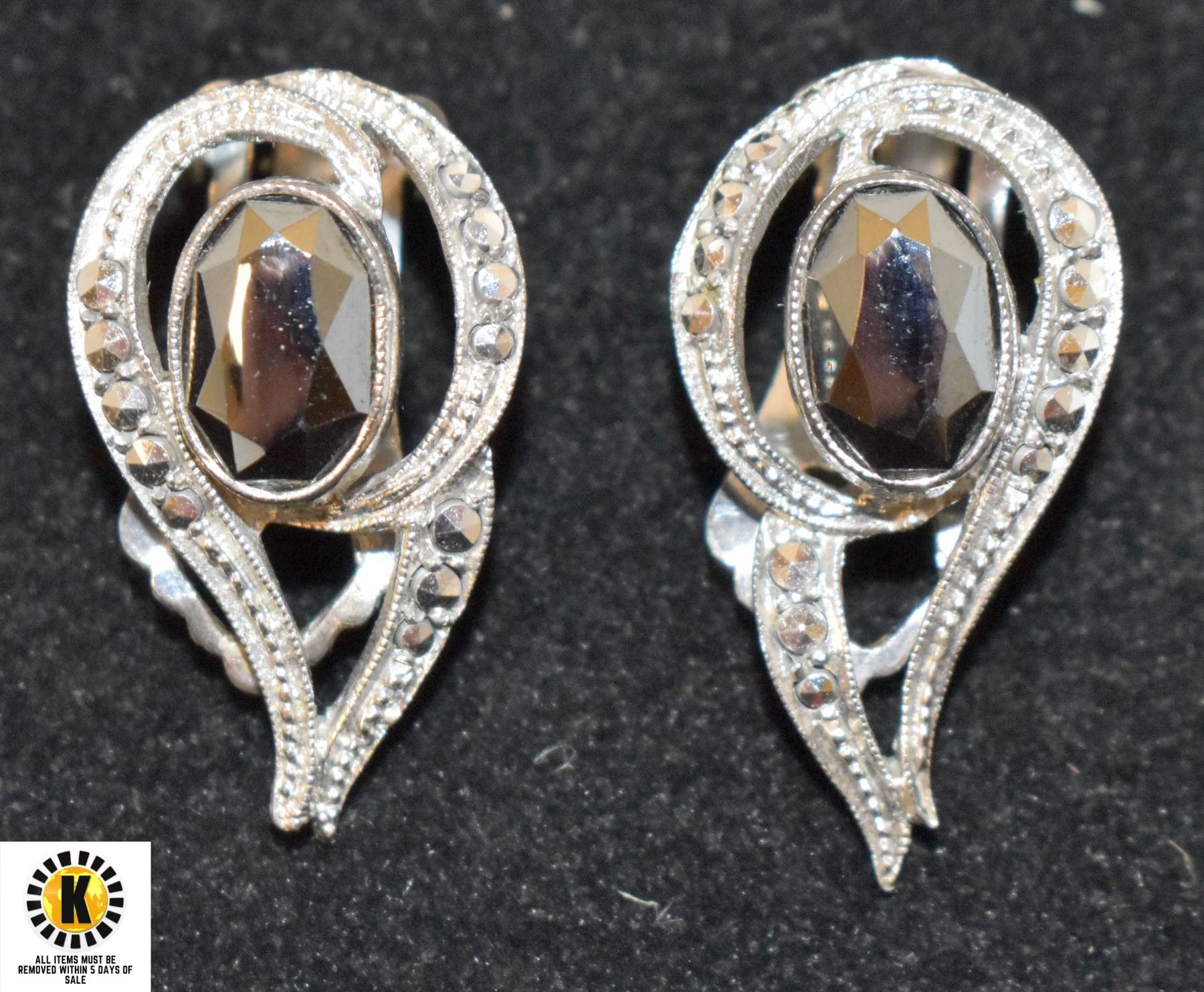ANTIQUE HEMATITE COSTUME JEWELRY EARRINGS