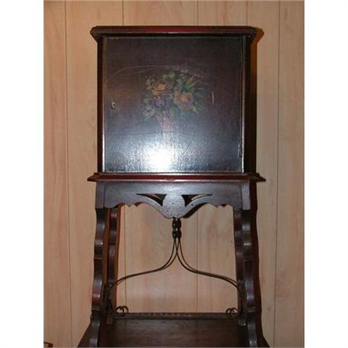GREAT OLD HUMIDOUR FROM AN OLD ESTATE, 16" WIDE X 31" HIGH X 13" DEEP DARK HARD WOOD WITH A FLOWER ARRAINGEMENT PAINTED ON THE FRONT DOOR. COPPER LINED...WAS A GREAT QUALITY ITEM IN ITS TIME., HAS SOME SURFACE SCRATCHES AND NEEDS A DOOR LATCH. SOLD AS IS, GREAT TO FIX UP!!