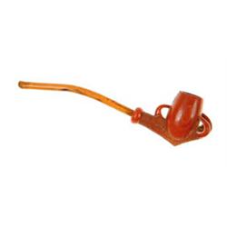 ANTIQUE INDIAN FIGURAL CATLINITE PIPE. This fine 19th Century sculpturesque pipe bowl consists of an egg shaped Catlinite bowl clutched by what appears to be eagle talons. This rare old pipe fitted with a stem. SIZE: From front of bowl to beginning of stem approx. 2-3/4". From the top of the bowl to the bottom of the bowl is approx. 2". Overall length including stem is approx. 7-1/2". CONDITION: A couple of very old, very small chips on the inside of the pipe bowl and some minor scuffs or scratches on the exterior, otherwise generally very good to excellent. A very rare form. 4-53619