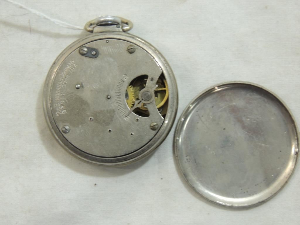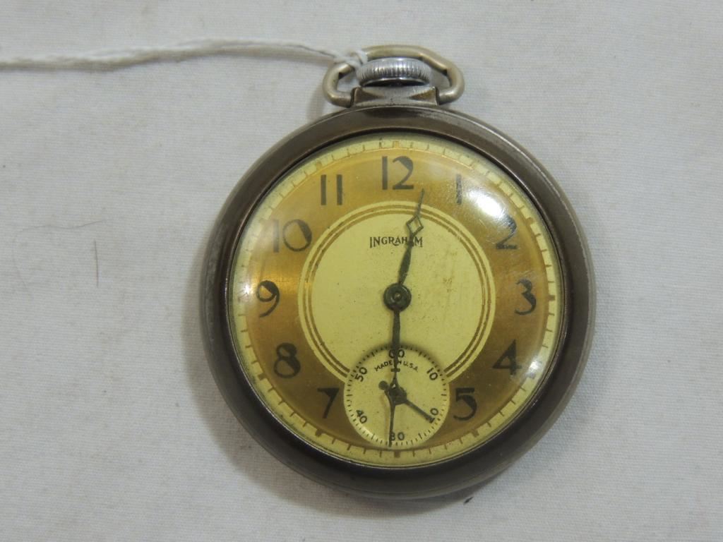 MADE IN THE USA, VINTAGE ANTIQUE POCKET WATCH, SIZE NO JEWELS AS SHOWN SEE PHOTO FOR MORE DETAILS.