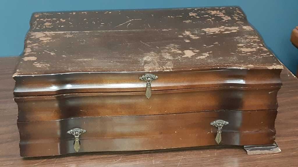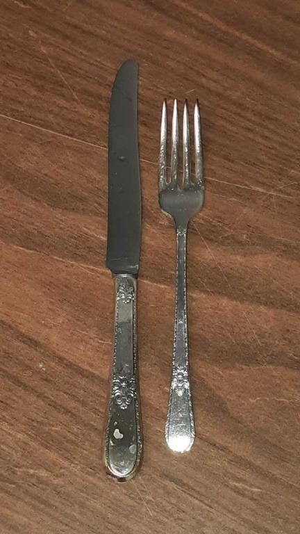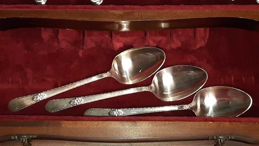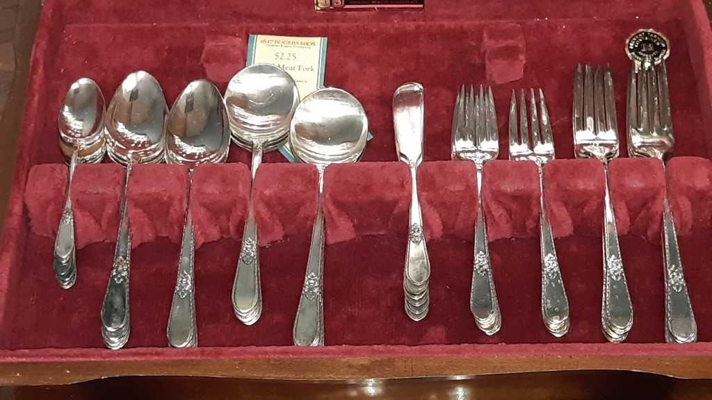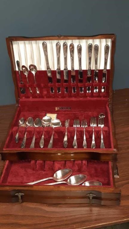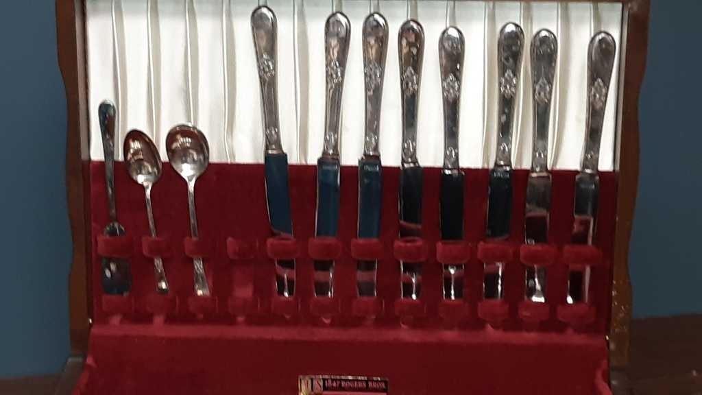 ANTIQUE INTERNATIONAL SILVER ROGERS 1847 CUTLERY 50 PIECES WITH CASE (MISSING A FOOT)