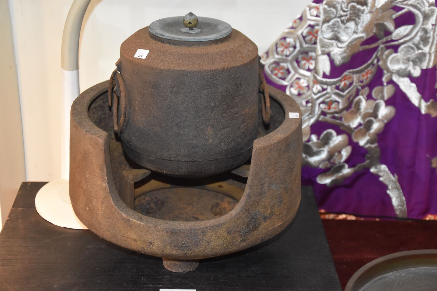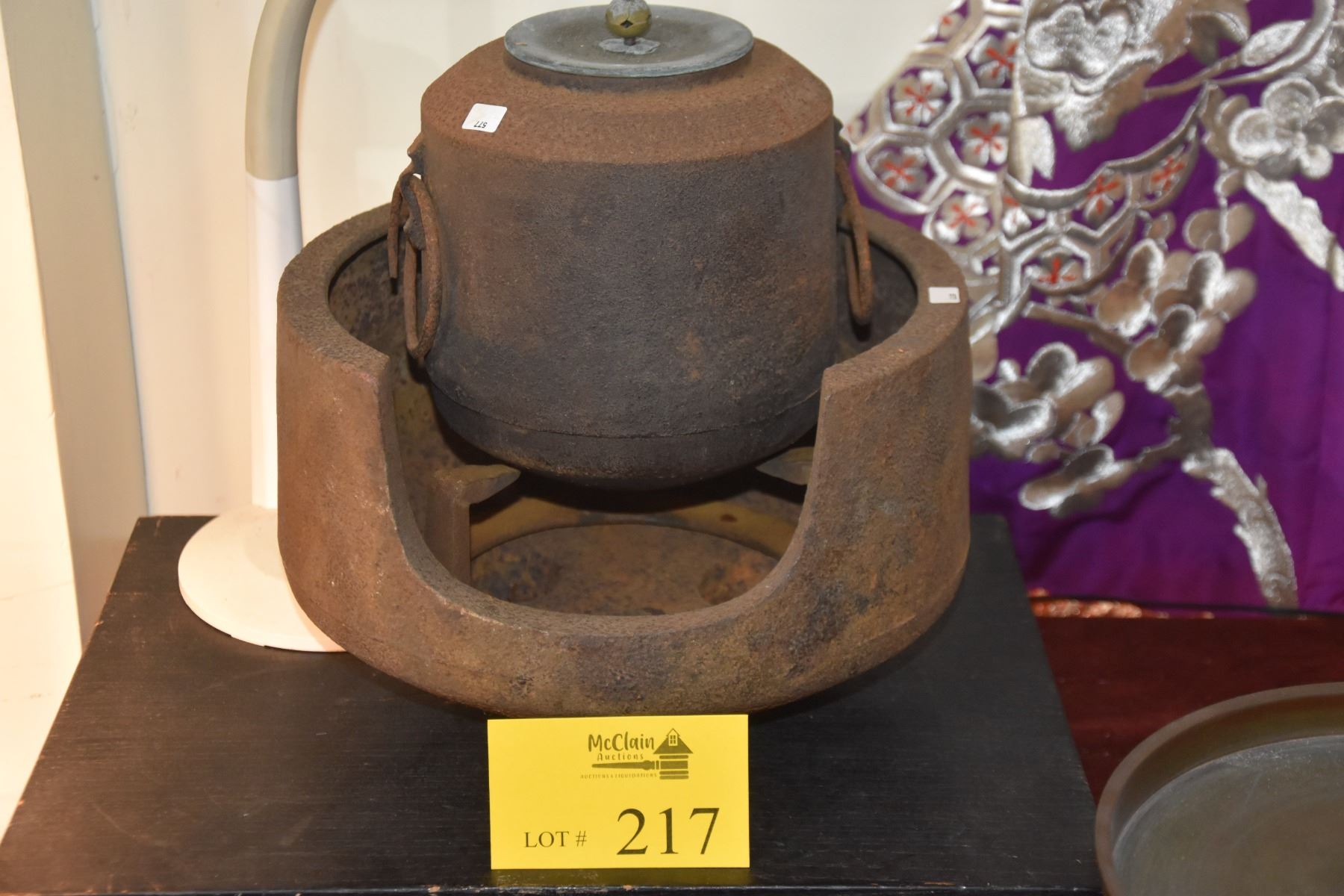 ANTIQUE IRON TEA KETTLE & BRAZIER (DOES NOT INCLUDE STAND)