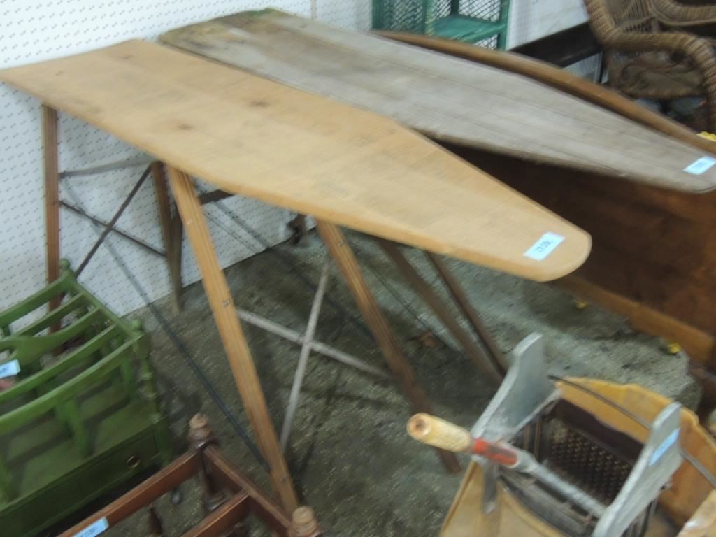 WOODEN IRONING BOARD, ANTIQUE IRONING BOARD, VINTAGE IRONING BOARD AS SHOWN SEE PHOTO FOR MORE DETAILS.