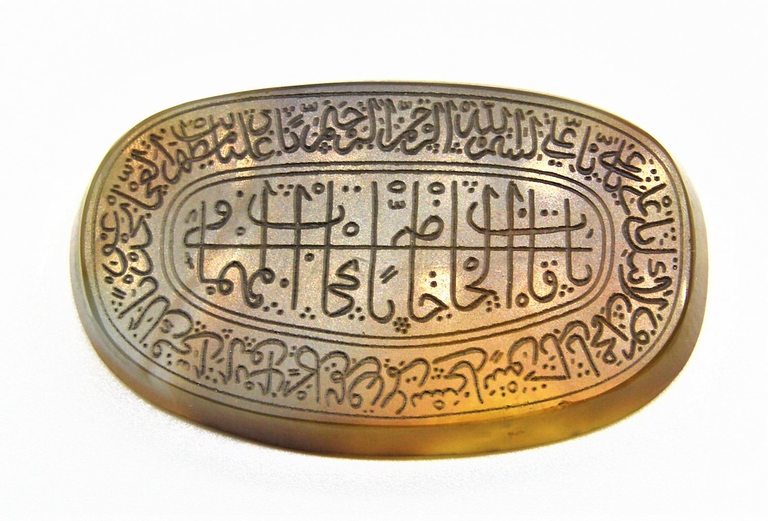 A RARE ANTIQUE MUGHAL/SAFAVID STYLE INSCRIBED/ENGRAVED BANDED AGATE TALISMANS AMULET INDIA OR