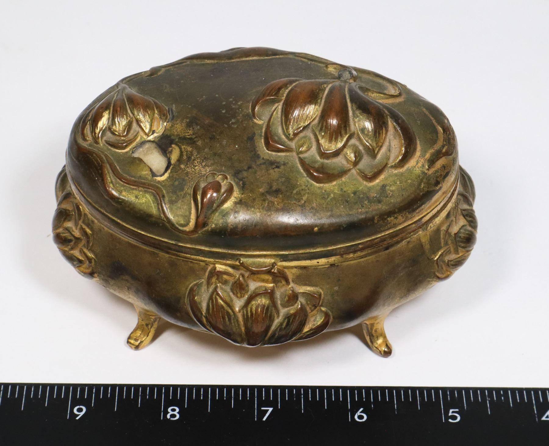 HINGE MISSING PIN. WEAR VISIBLE IN PICTURES. APPROX 3" TALL
